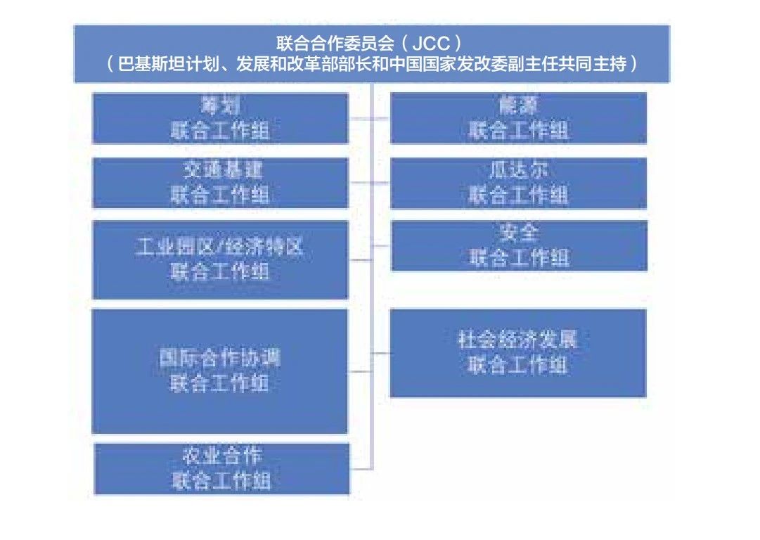 CPEC項目以促進多部門增長為目標,由以下聯合工作組(JWGs)負責推動: