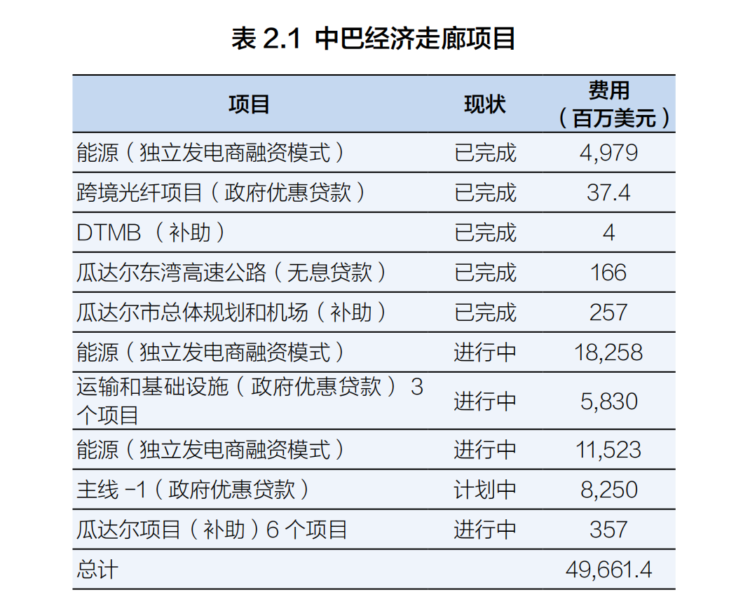 根據中巴經濟走廊長期計劃,到2020年,中巴經濟走廊已初具規模,有效解決了巴基斯坦經濟和社會發展的重大問題。現階段,預計中巴經濟走廊將開始發揮促進兩國經濟增長的作用。到2025年,中巴經濟走廊建設將力爭進入高級階段,工業體系接近完工,主要經濟功能全面啟動。走廊沿線居民的生活質量將得到顯著改善,從而促進地區經濟更加均衡發展。迄今為止,盡管新冠疫情對勞動力和資源的流動造成了影響,但該項目仍能實現其目標。總投資組合的影響和詳情如下: