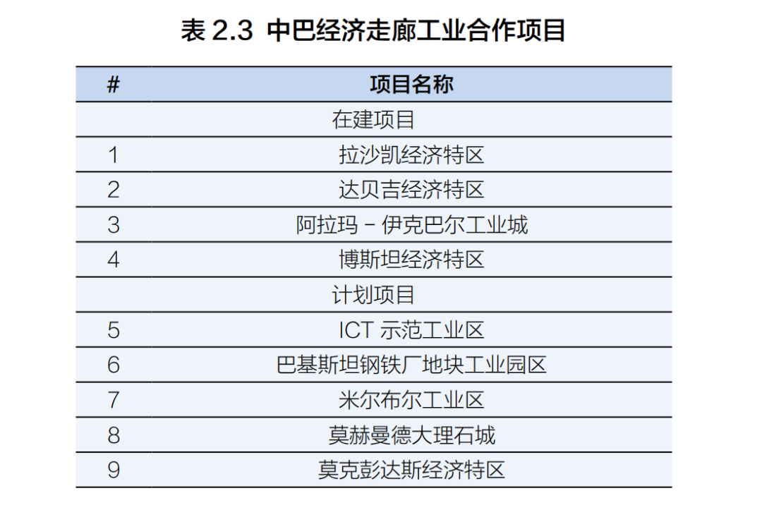 在中巴經濟走廊框架下,巴基斯坦做出了巨大努力,在不同地區建立工業區和九個經濟特區。這些工業區的戰略目的是吸引外國投資、刺激制造業、創造就業機會和促進經濟擴張(Hassan Daud Butt, m. u. a., & Majeed, s. 2022)。通過中巴經濟走廊利用《中巴自由貿易協定》(CPFTA)對國家經濟增長也至關重要。