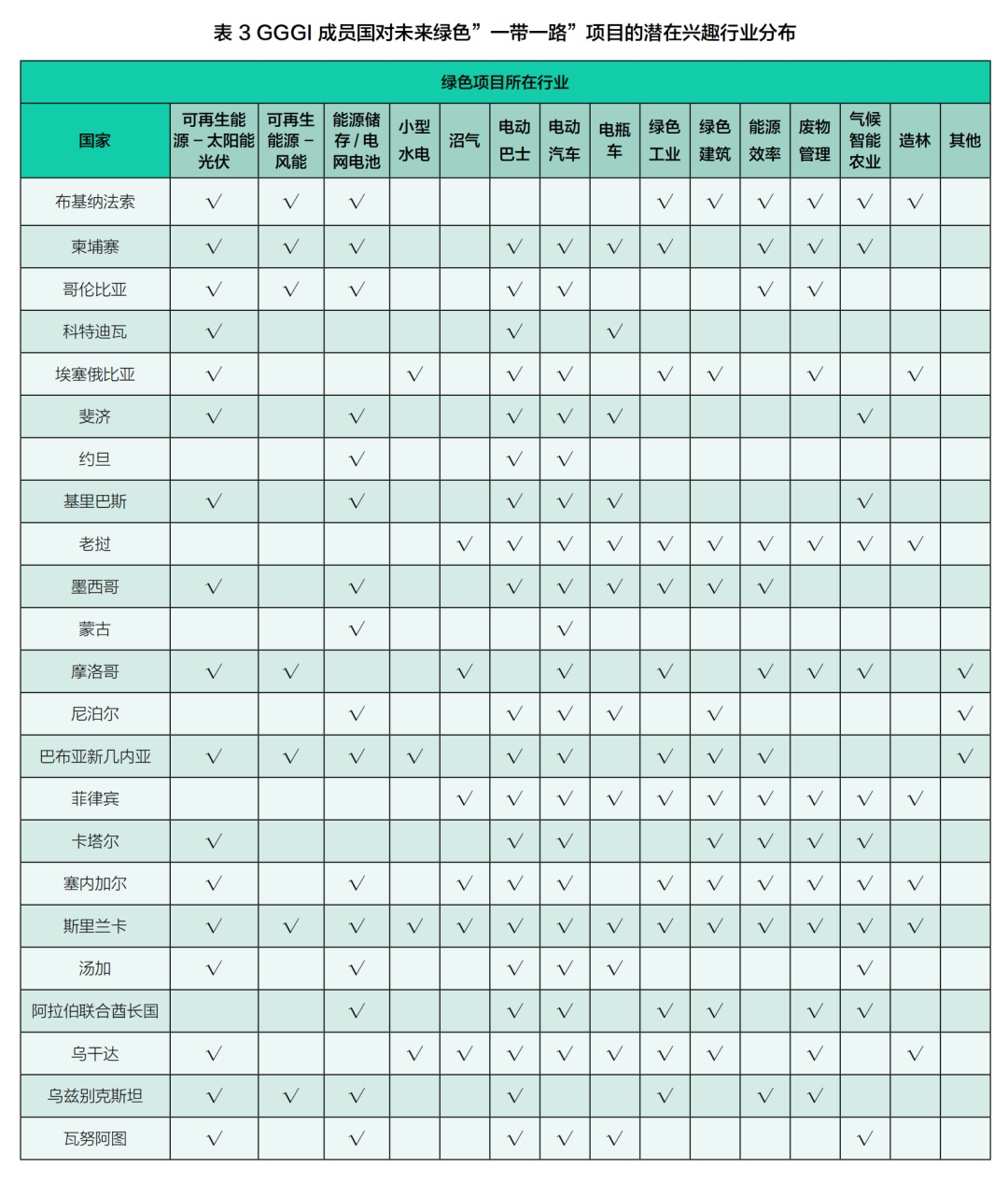 GGGI成員國在“一帶一路”倡議中的綠色成分