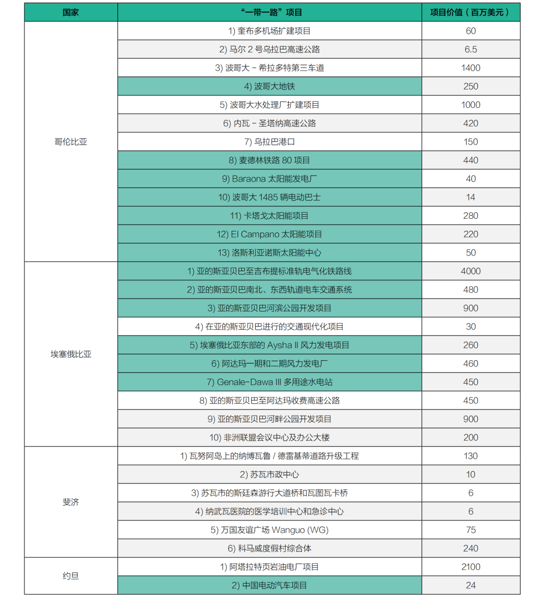 通過GGGI團隊辦公室的協助,作者對四個國家對接“一帶一路”項目的政府官員進行了訪談。這4個國家分別是埃塞俄比亞、哥倫比亞、老撾和斯里蘭卡。根據訪談內容,本節重點介紹埃塞俄比亞和哥倫比亞的案例研究,以分析過去十年來“一帶一路”項目的實施情況。