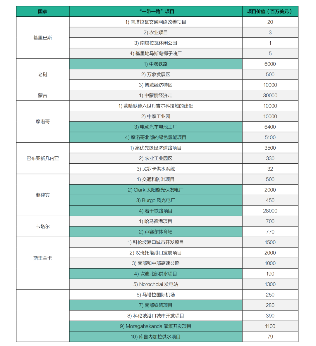 3.本國是否有促進可持續發展的“一帶一路”項目(即綠色“一帶一路”項目),例如可再生能源或新能源交通產業?