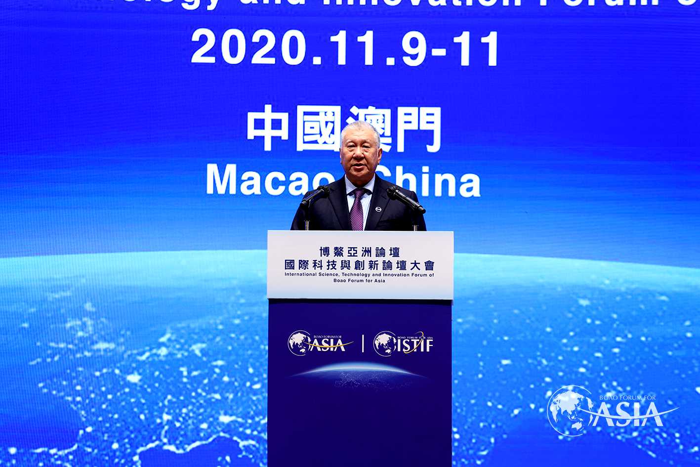 On November 10th, Mr. Edmund Ho Hau Wah, Vice Chairman of 13th Chinese people’s political Consultative Conference (CPPCC) National Committee and President of International Science, Technology and Innovation Forum (ISTIF) of Boao Forum for Asia (BFA), delivered a speech at the opening ceremony. He thanked President Xi Jinping for sending a congratulatory letter to the conference and Vice Premier Han Zheng for his video remarks. In his speech, Mr. Ho pointed out that under current international climate, the need for international cooperation in scientific and technological innovation is more urgent than ever before. He affirmed the long-term economic development of Macao in the past 20 years since its return to the motherland, and looked forward to inject “fresh impetus” into Macao’’s scientific and technological innovation through ISTIF.