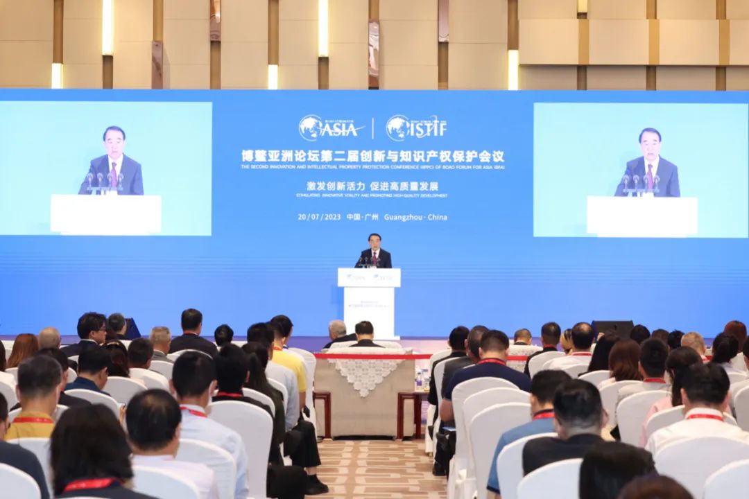 Boao Forum for Asia (BFA) convened the 2nd Innovation and Intellectual Property Protection Conference (IIPPC) in Guangzhou on July 20. Distinguished guests from China and abroad attended the conference, including Edmund Ho Hau-wah, Vice Chairman of the 14th National Committee of the Chinese People’s Political Consultative Conference (CPPCC), Li Baodong, Secretary General of Boao Forum for Asia (BFA), Leong Vai Tac, Member of the Council of Advisors of BFA and Chairman, BFA Macao Committee for Guangdong-Hong Kong-Macao Greater Bay Area Development, Kenichiro Natsume, Assistant Director General of the World Intellectual Property Organization (WIPO), Liu Hua, Director of WIPO Office in China, Shoichi Okuyama, President of the International Association for the Protection of Intellectual Property (AIPPI), Wang Zhicheng, Director General of Copyright Department of National Copyright Administration of China (NCAC), Lin Guanghai, President of the Civil Adjudication Tribunal No.3 (IPR Division) of the Supreme People’s Court of China, Zhang Zhicheng, Director of Intellectual Property Protection Department of China National Intellectual Property Administration (CNIPA), David FL Wong, Director of the Intellectual Property Department of the Hong Kong SAR Government, Zhang Xichun, Secretary of the CPC Committee of South China University of Technology (SCUT), OTA Yoshitaka, Director of the Intellectual Property Rights Department of the Japan External Trade Organization (JETRO) Beijing, Zheng Chaogen, President of Fanchakonggu, etc.