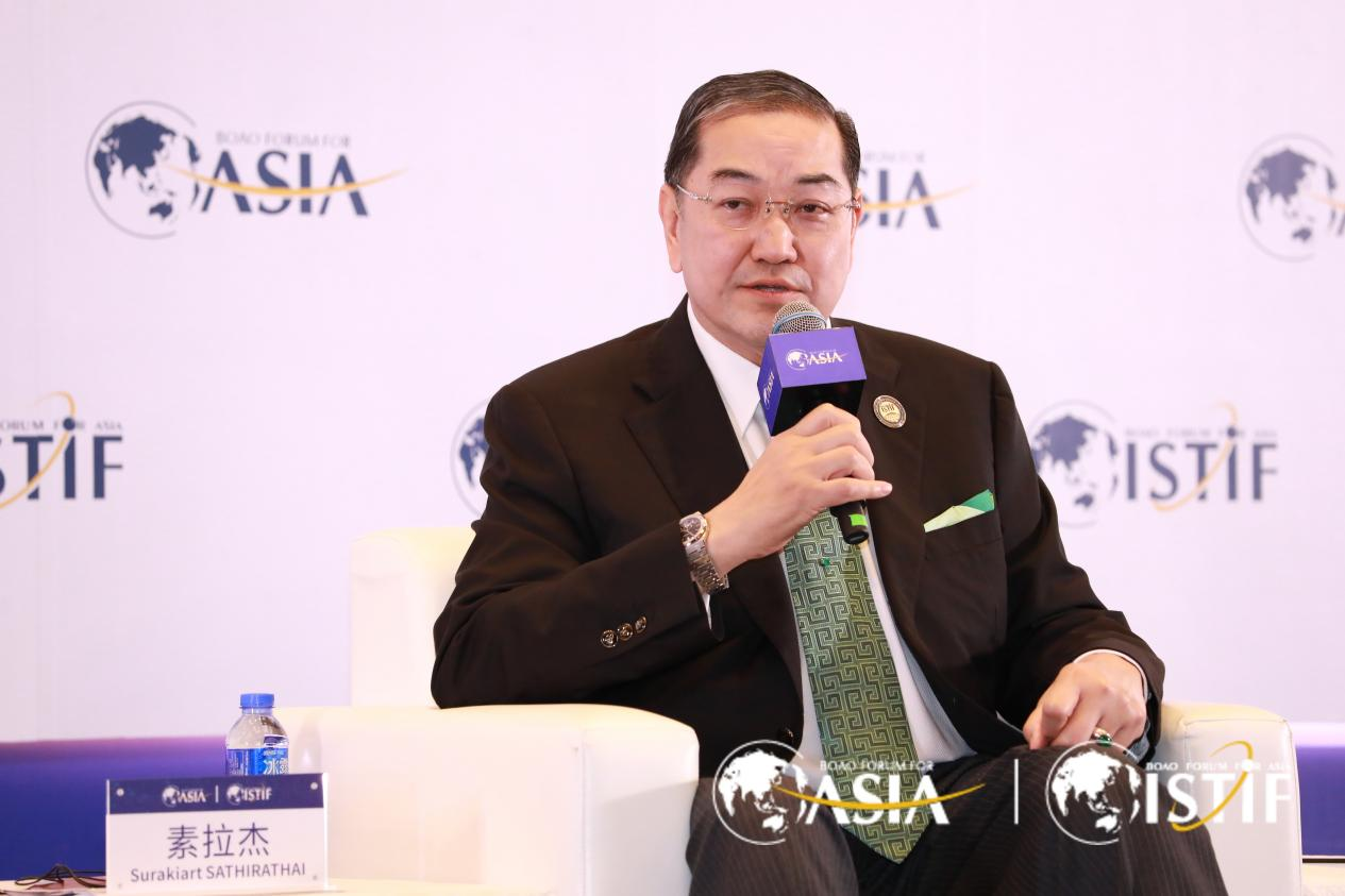 分論壇由博鰲亞洲論壇政策顧問、新聞發言人扎法爾主持,博鰲亞洲論壇理事、泰國前副總理素拉杰,斯里蘭卡外交部輔秘古納塞克斯,博鰲亞洲論壇粵港澳大灣區建設澳門委員會主席梁維特圍繞一帶一路話題展開討論。