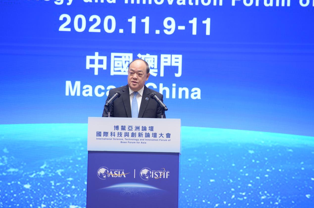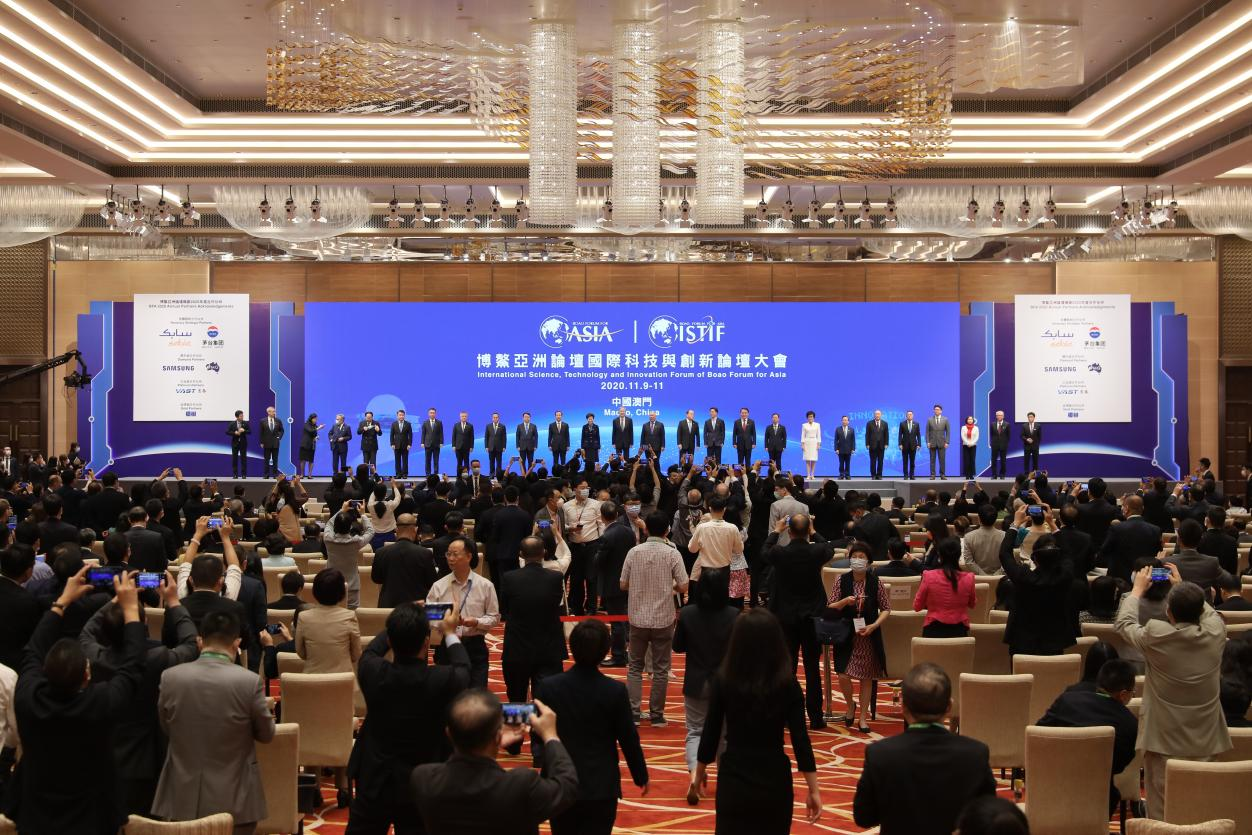 11月10日上午,博鰲亞洲論壇國際科技與創(chuàng)新論壇首屆大會在澳門-中國與葡語國際商貿(mào)合作服務(wù)平臺綜合體舉行開幕式。論壇東道國中國國家主席習(xí)近平發(fā)來賀信,國務(wù)院副總理韓正發(fā)表視頻主旨演講。論壇理事長潘基文(視頻連線)、大會主席何厚鏵、論壇副理事長及中方首席代表周小川、論壇理事菲律賓前總統(tǒng)阿羅約(視頻連線)、澳門特別行政區(qū)行政長官賀一誠、香港特別行政區(qū)行政長官林鄭月娥分別發(fā)表致辭。論壇秘書長李保東主持開幕式。阿爾及利亞駐華大使以及菲律賓、孟加拉、烏茲別克斯坦、巴基斯坦等論壇發(fā)起國駐華代表,以及來自18個國家和地區(qū)的近千名嘉賓,40多家媒體近百名記者參加大會開幕式。