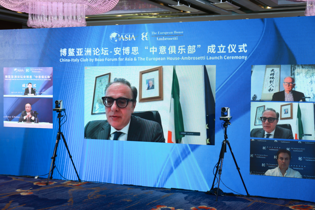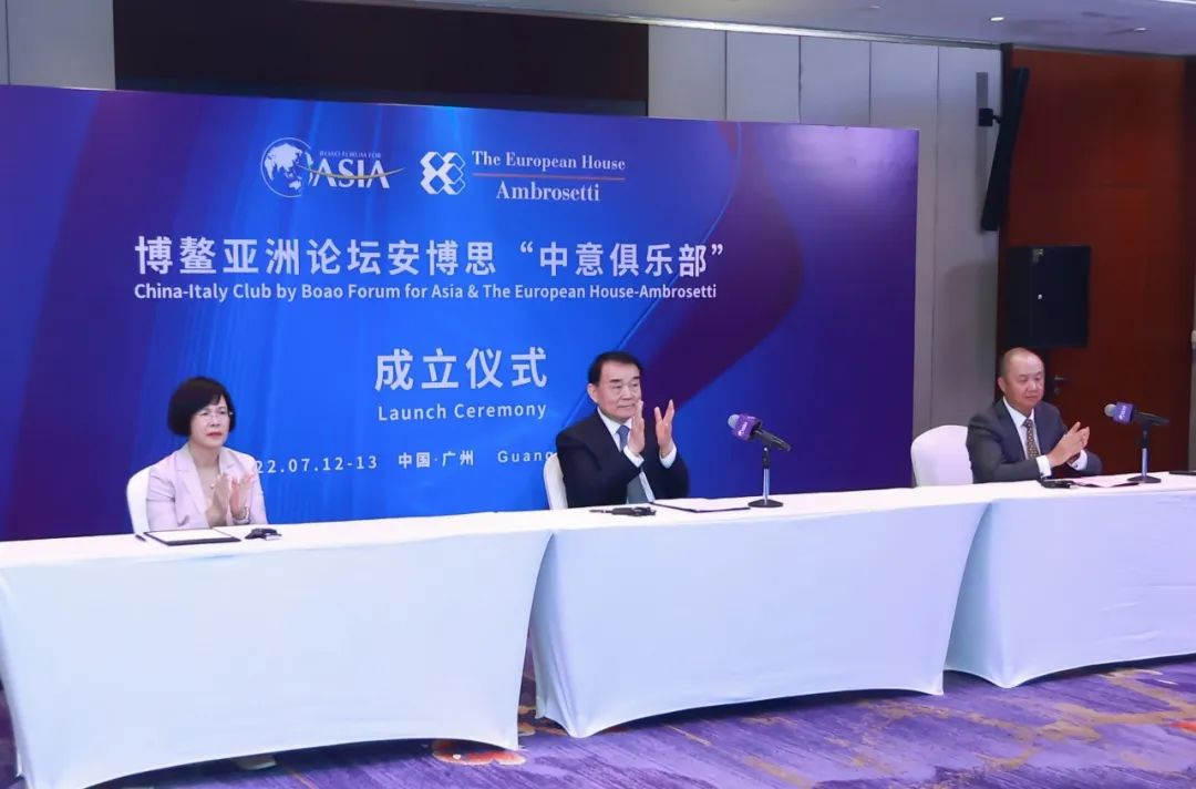 2022年7月12日,由博鰲亞洲論壇與歐洲咨詢聯(lián)盟-安博思共同舉辦的“中意俱樂部”成立儀式以線上線下相結(jié)合方式舉行。論壇秘書長李保東、意大利駐華大使方瀾意、歐洲咨詢聯(lián)盟-安博思董事會成員博吾樂、廣州益武國際董事總經(jīng)理李廣韜以及中意兩國20多家企業(yè)代表出席。成立儀式由歐洲咨詢聯(lián)盟-安博思駐中國首席代表馬力諾主持。